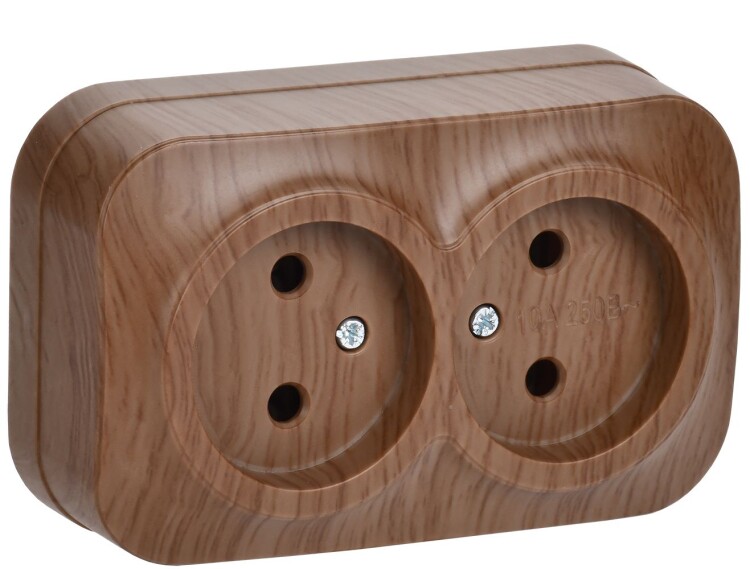 Розетка 2х2P 10А накладной монтаж РС22-2-ХД дуб GLORY IEK