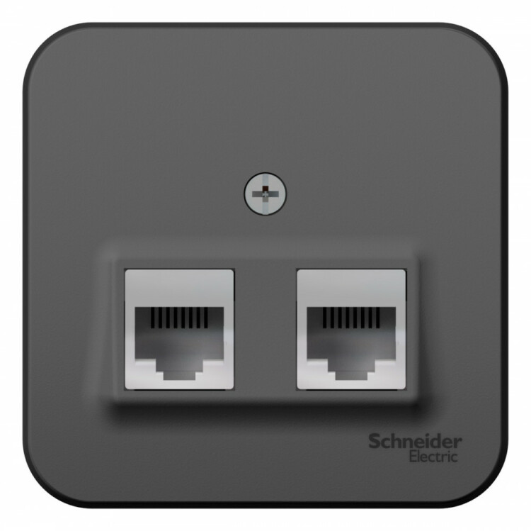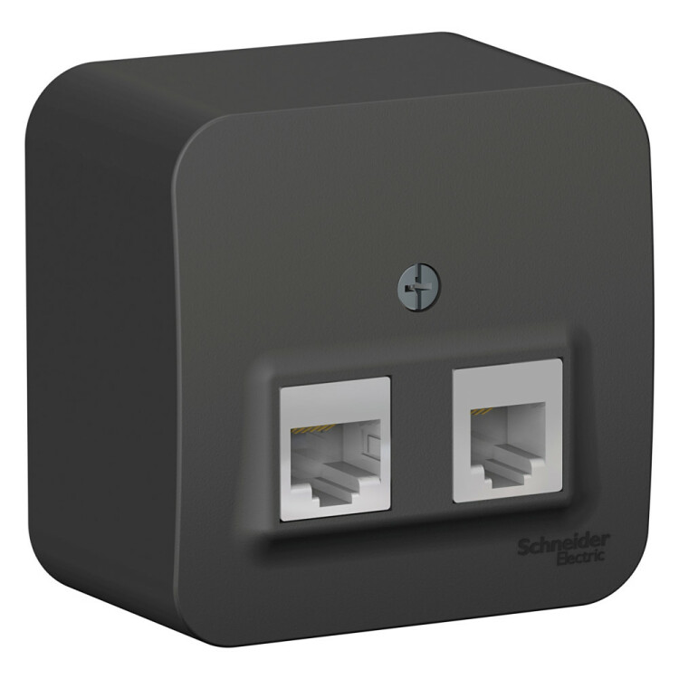BLANCA О/У РОЗЕТКА двойная: комп.RJ45, кат.5E + телеф. RJ11, ИЗОЛ.ПЛ.,АНТРАЦИТ