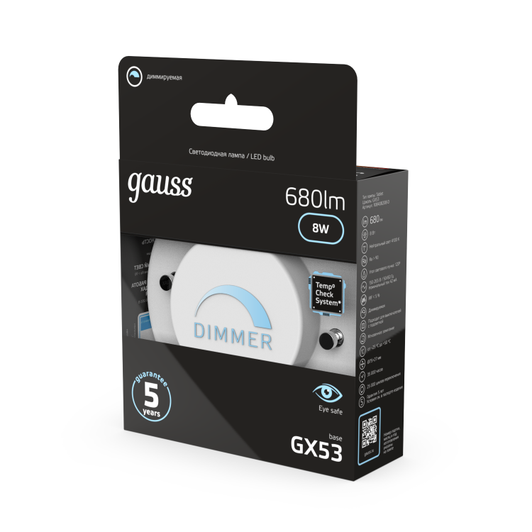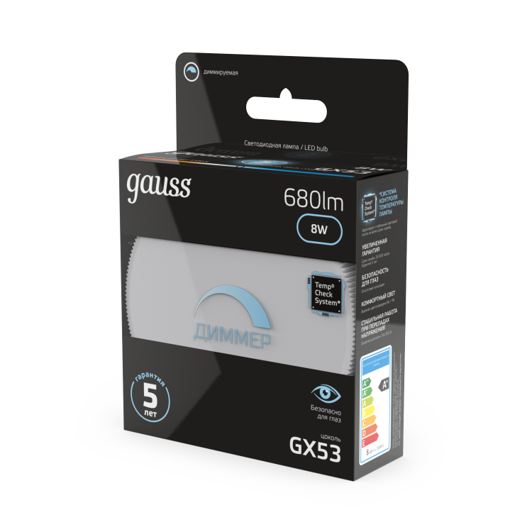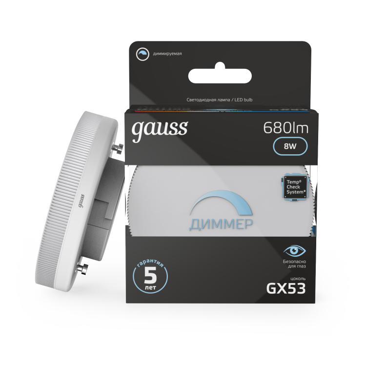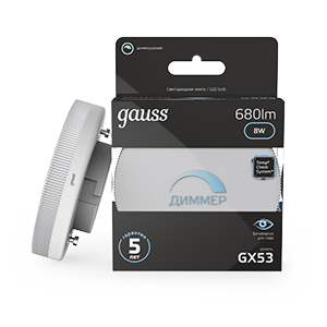 Лампа светодиодная 8 Вт GX53 таблетка диммируемая, холодный белый 4100К