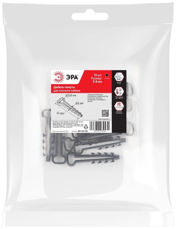 Дюбель хомут ЭРА NO-224-564 для плоского кабеля 5-8 мм чёрный (10 штук)