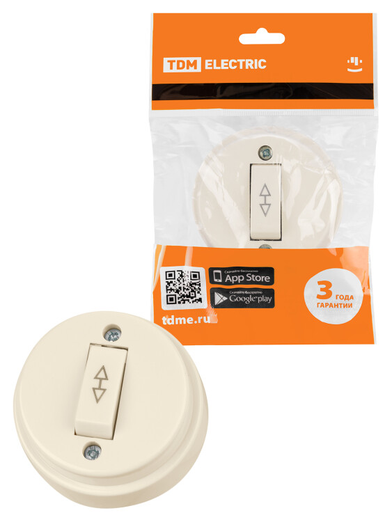 Переключатель на 2 направления 1-кл. открытой установки IP20 10А сл. кость "Ретро" TDM