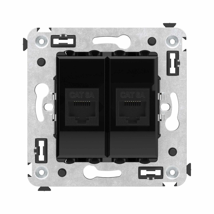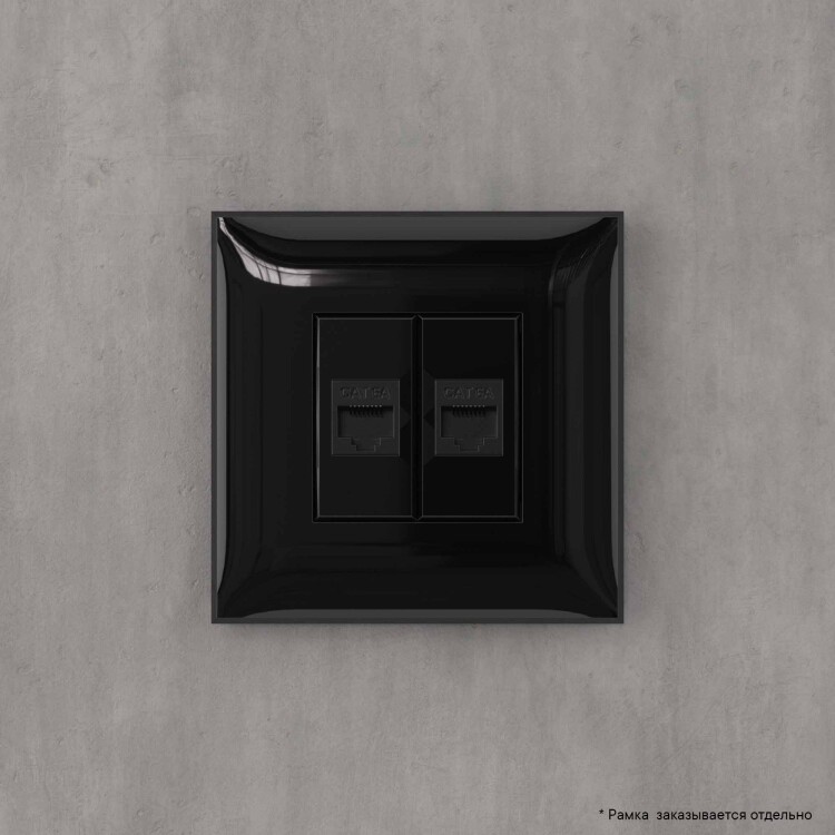 Компьютерная розетка RJ-45 без шторки в стену, кат.6А двойная, "Avanti", "Черный квадрат"