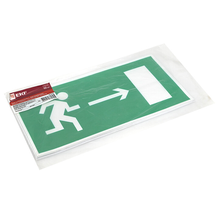 Знак наклейка E03 "Направление к эвакуационному выходу направо" (150х300) ГОСТ 12.4.026-2015 EKF PROxima