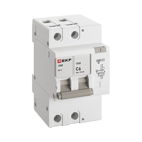 Дифференциальный автомат АД-2 6А/10мА (х-ка C, АС, электронный) 6кА EKF PROxima