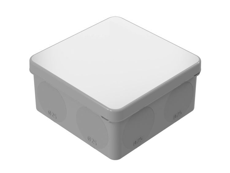 Коробка монтажная распределительная 100х100х50мм серая для открытого монтажа 8 вводов IP67, 2-х комп
