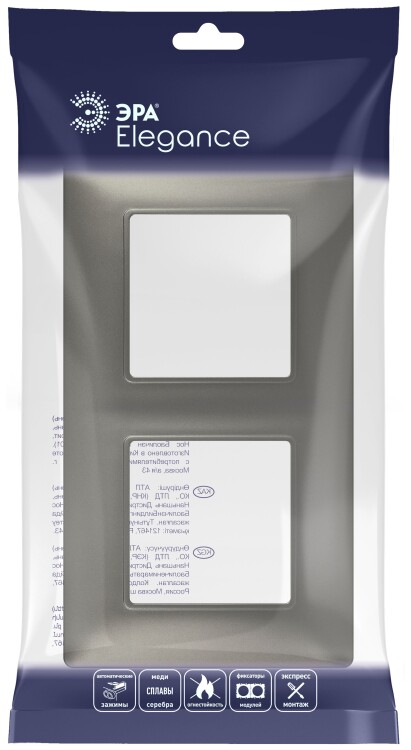 Рамка для розеток и выключателей ЭРА Elegance 14-5002-16 на 2 поста, титан