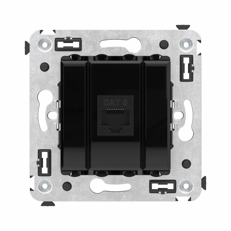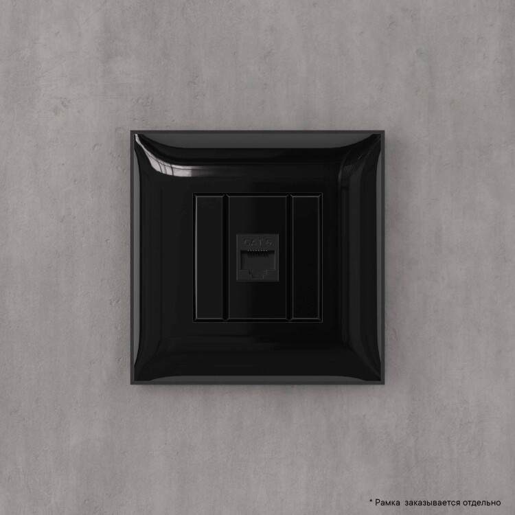 Компьютерная розетка RJ-45 без шторки в стену, кат.6 одинарная, "Avanti", "Черный квадрат"