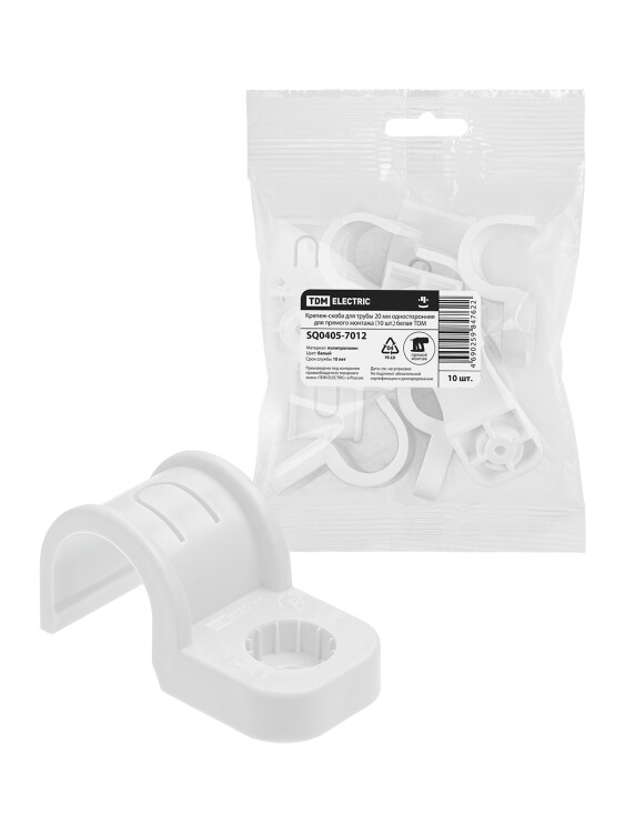 Крепеж-скоба для трубы 20 мм односторонняя для прямого монтажа (10 шт.) белая TDM