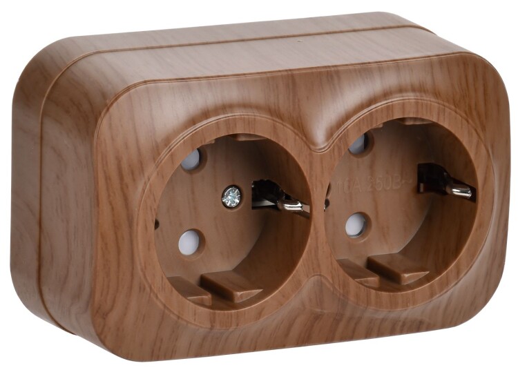 Розетка 2х2P+E со шторками 16А накладной монтажРСш22-3-ХД дуб GLORY IEK