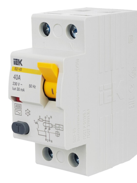 Выкл. дифф. тока 2-пол. 40А 30 mA тип АC серия ВД1-63