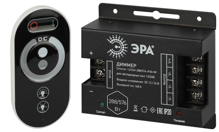 Диммер для светодиодной ленты ЭРА Dimmer-12/24V-288/576-IP20-RF с радио пультом