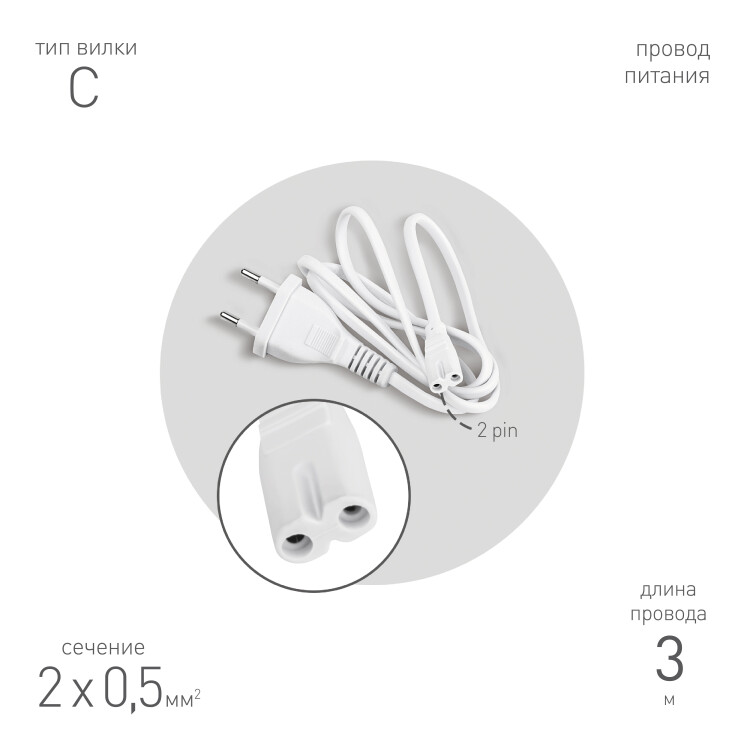 Кабель питания для линейного светильника ЭРА FT-С7-plug-3 , фитосветильника 3 м