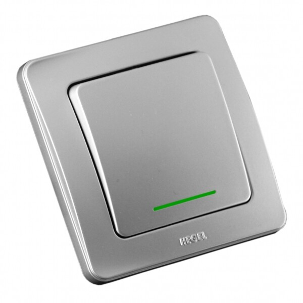 ВС10-312-06 Выключатель скрытой установки, одноклавишный, с индикацией, цвет серебро