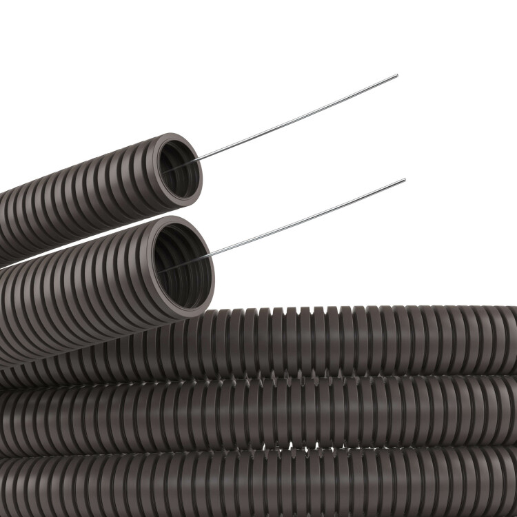 Труба ПА 6 гофр. DN12мм, ПВ-0, Dвн 12,2 мм, Dнар 15,8 мм, цвет тёмно-серый, с протяжкой (Бухта 50м)