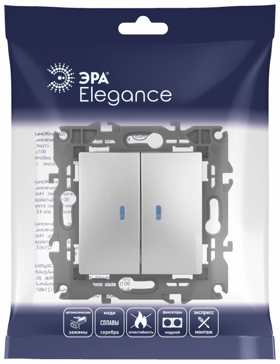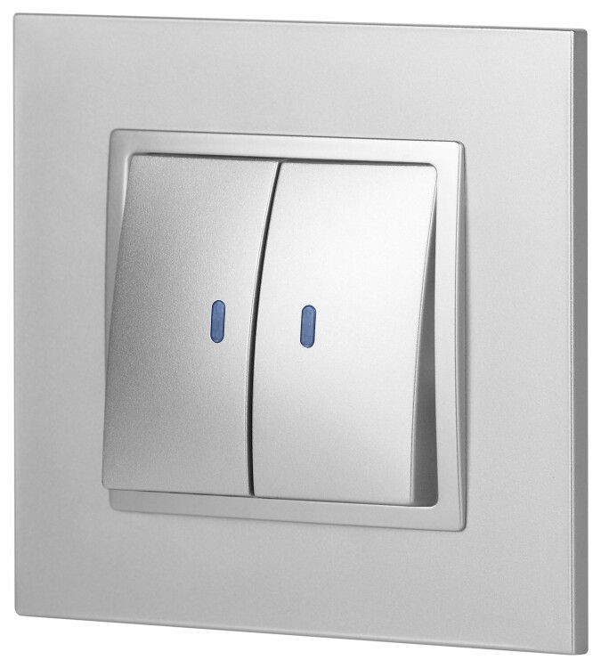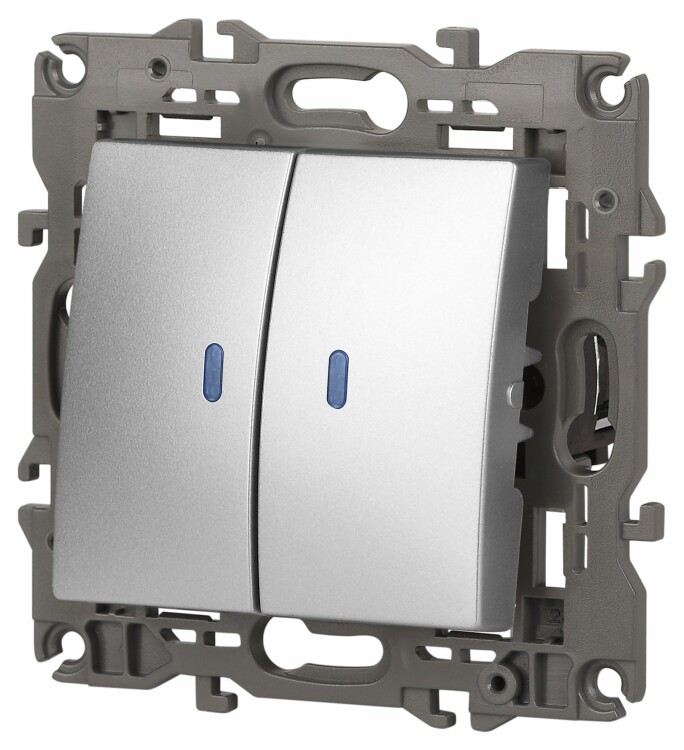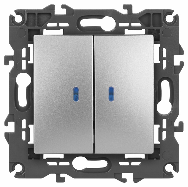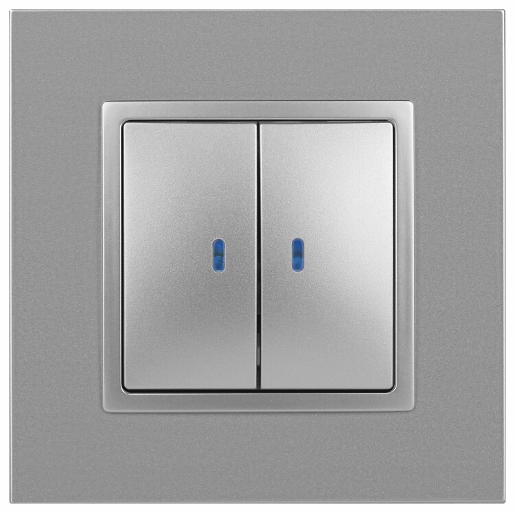 Выключатель 2 клавишный с подсветкой 10А алюминий Elegance 14-1105-03