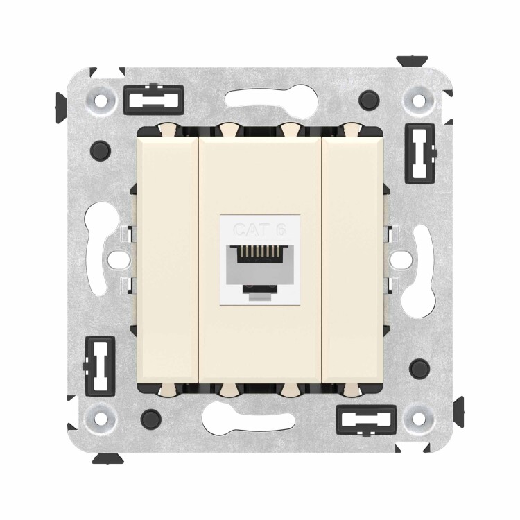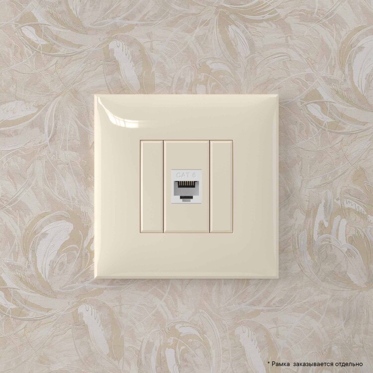 Компьютерная розетка RJ-45 без шторки в стену, кат.6 одинарная, "Avanti", "Ванильная дымка"