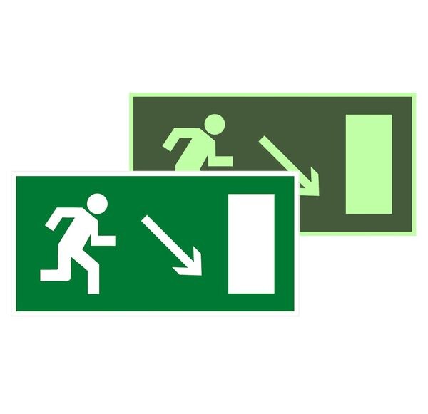 Знак наклейка E07 "Направление к эвакуационному выходу направо вниз" (150x300) фотолюминесцентный ГОСТ 12.4.026-2015 EKF PROxima