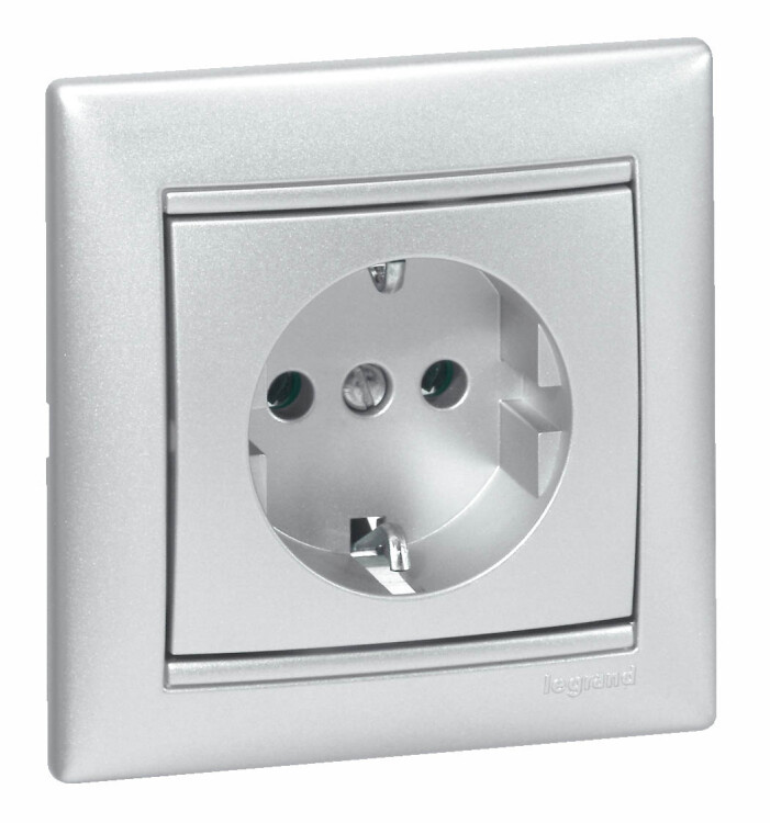 Розетка с заземлением - Legrand Valena - без шторок 16А 250В винтовые зажимы - алюминий