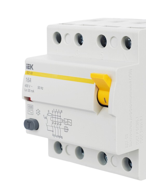 Выкл. дифф. тока 4-пол. 16А 30мA тип АC серия ВД1-63