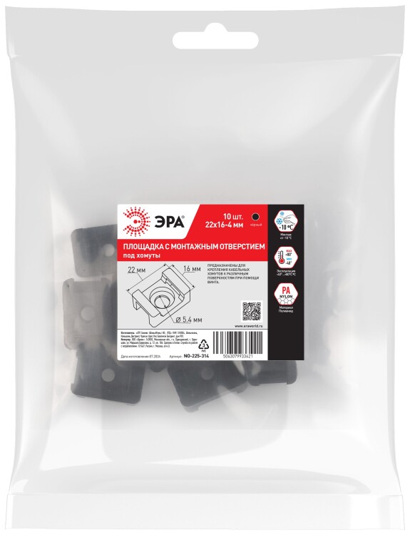 Площадка с монтажным отверстием под хомуты ЭРА NO-225-314 22х16 мм чёрная М4 10 штук