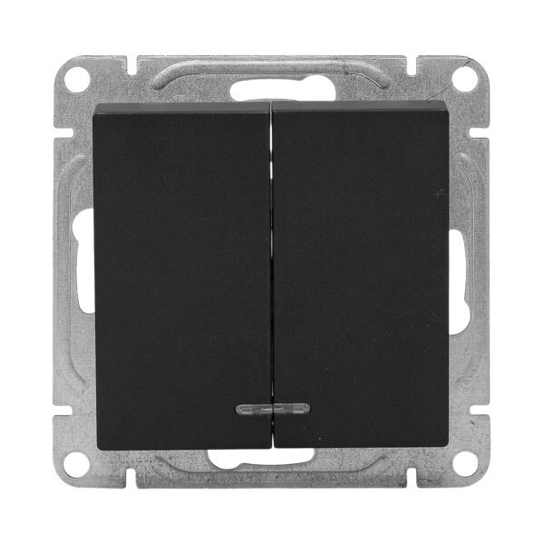 Выключатель 2 клавишный с подсветкой чёрный Эпика EKF
