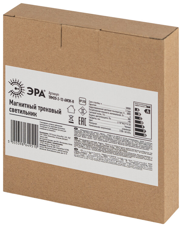 Магнитный трековый светильник ЭРА TRM20-2-12-6W3K-B для системы NOVA 48V 6Вт 3000К заливающий свет черный