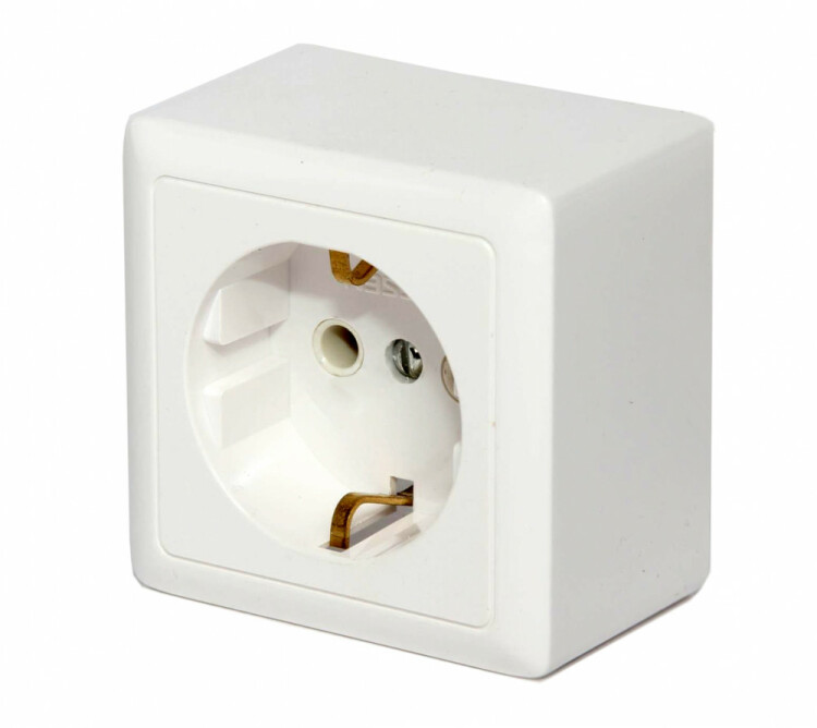Розетка 2Р+Е накладной монтаж белый ХИТ