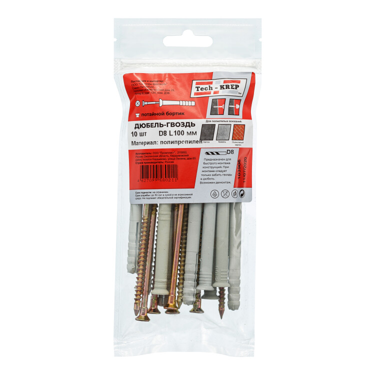 Дюбель-гвоздь 8х100 пот. манжета (полипропилен) (10 шт) - пакет