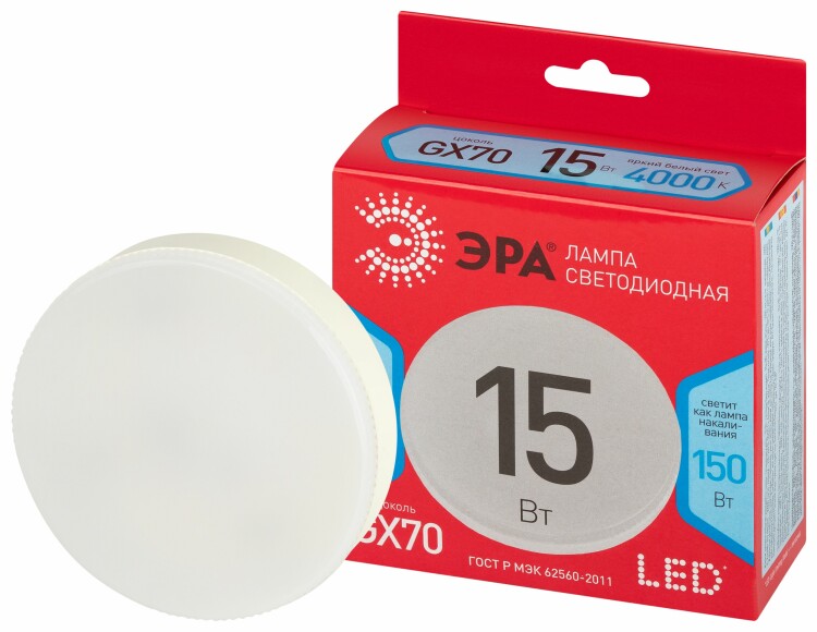 Лампочка светодиодная ЭРА RED LINE LED GX-15W-840-GX70 R GX70 15 Вт таблетка яркий белый свет
