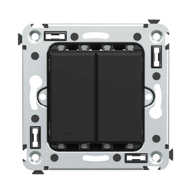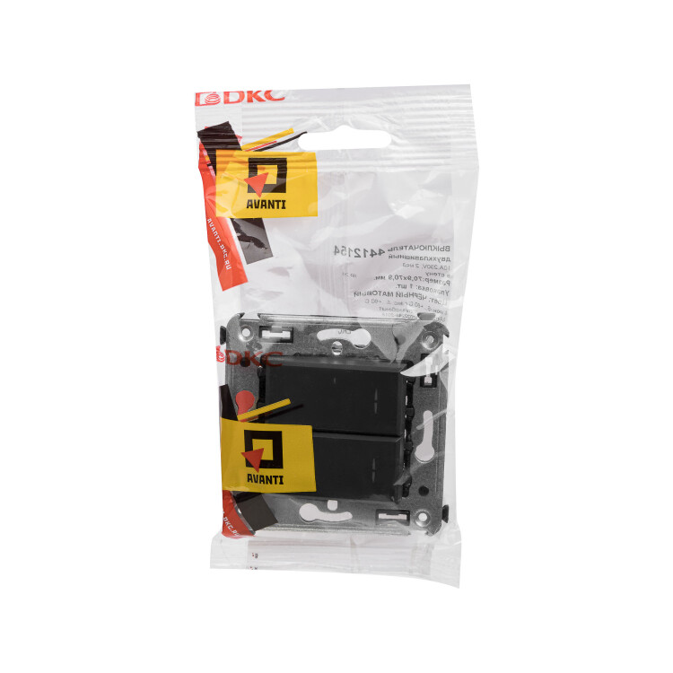 Кнопка двухклавишная в стену, "Avanti", "Черный матовый"