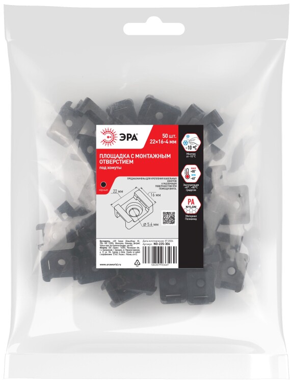 Площадка с монтажным отверстием под хомуты ЭРА NO-225-306 22х16 мм М4 чёрная 50 штук