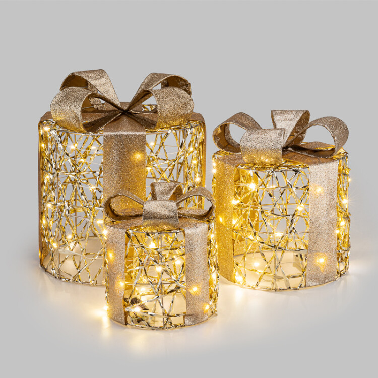Светодиодные фигуры Подарки в форме цилиндра 15/20/25 см, цвет свечения теплый белый, питание 2xАА/3xAA/3xАА (не в комплекте) NEON-NIGHT