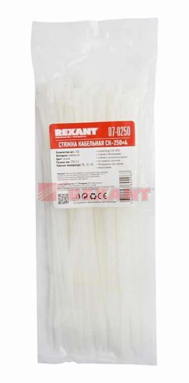 Хомут кабельный нейлон 3,6х250 мм белый (упак. 100шт)