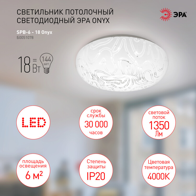 Светильник потолочный светодиодный ЭРА Классик без ДУ SPB-6 - 18 Onyx светодиодный 18 Вт