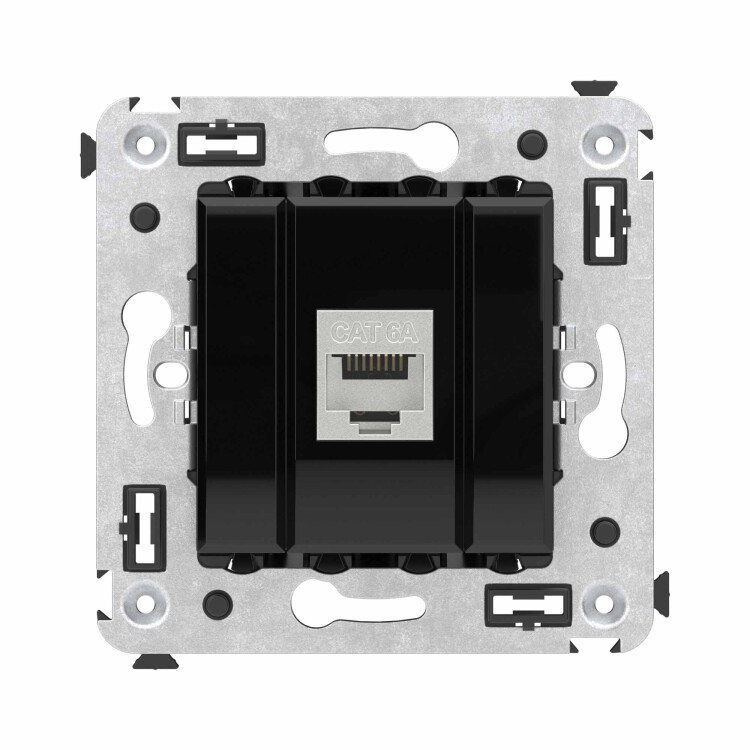 Компьютерная розетка RJ-45 без шторки в стену, кат.6А одинарная экранированная, "Avanti", "Черный квадрат"