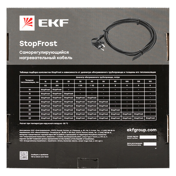 Саморегулирующийся нагревательный кабель 17 Вт/м для обогрева трубопроводов StopFrost 15 м