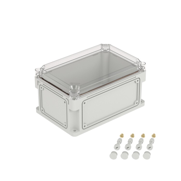 Корпус 300х200х160 (выс.крышки 35) стенки с выбивными фланцами, прозрачная крышка, IP67