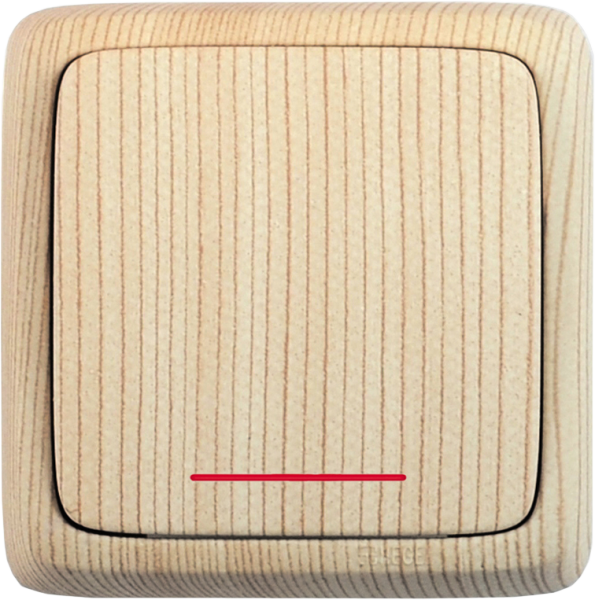 ВА10-114-02 Выключатель открытой установки, одноклавишный, с индикацией, с изолирующей пластиной, цвет сосна