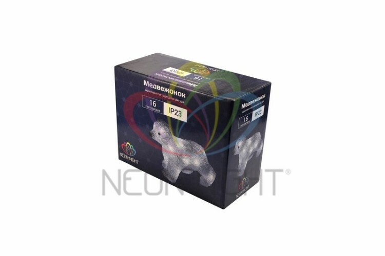 Акриловая светодиодная фигура Медвежонок 24x11x18 см, 4,5 В, 3 батарейки AA (не вxодят в комплект), 16 светодиодов NEON-NIGHT