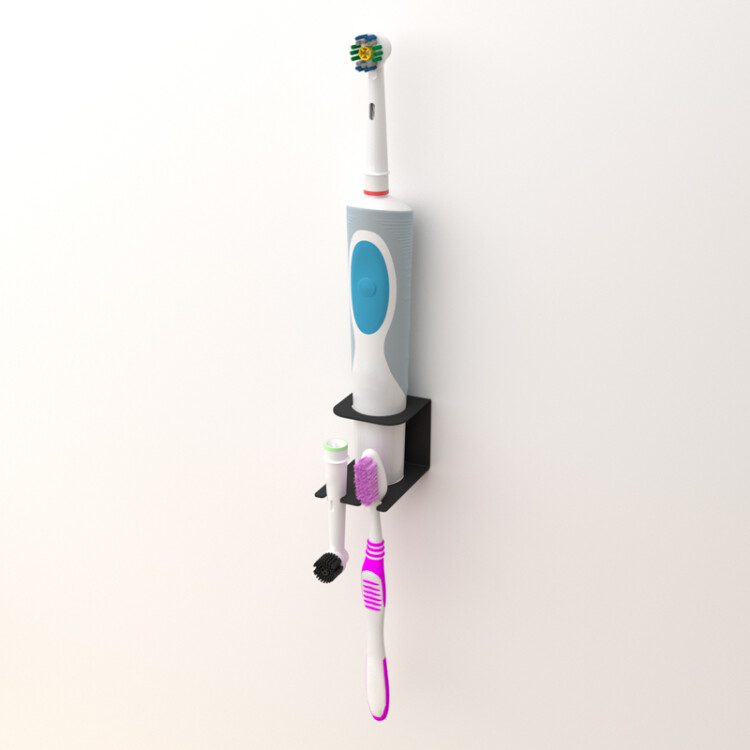Держатель для xранения электрическиx зубныx щеток и насадок, монтаж без сверления, черный REXANT