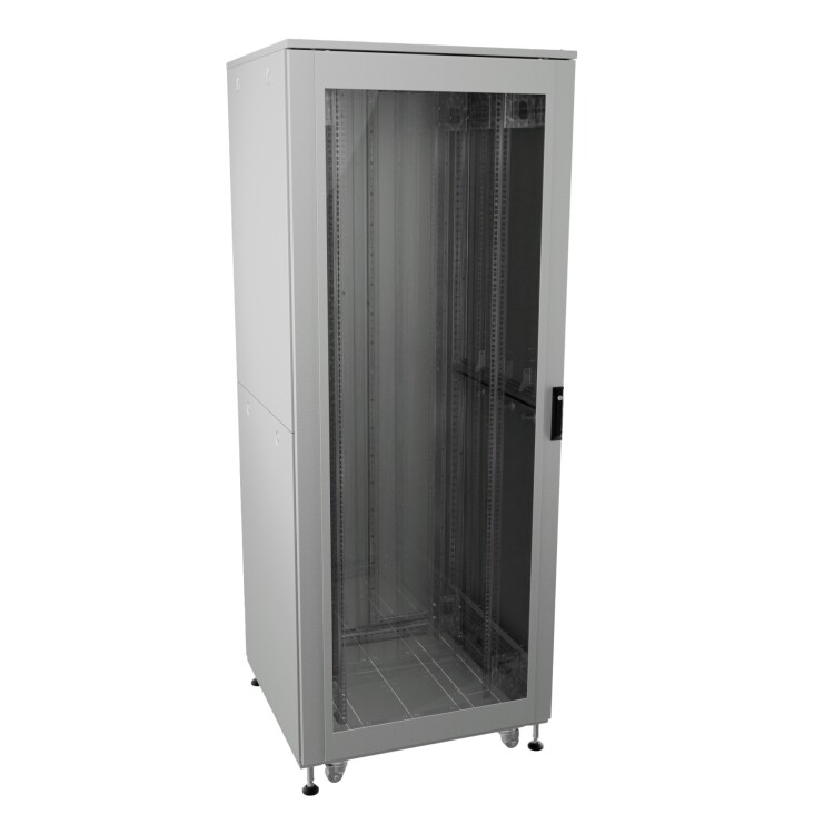 Шкаф напольный разобранный 19"" IT-CQE-N 32U 600x1000мм, крыша с вырубкой, дверь стекло и сплошная металл, одинарные боковые панели, серый RAL7035