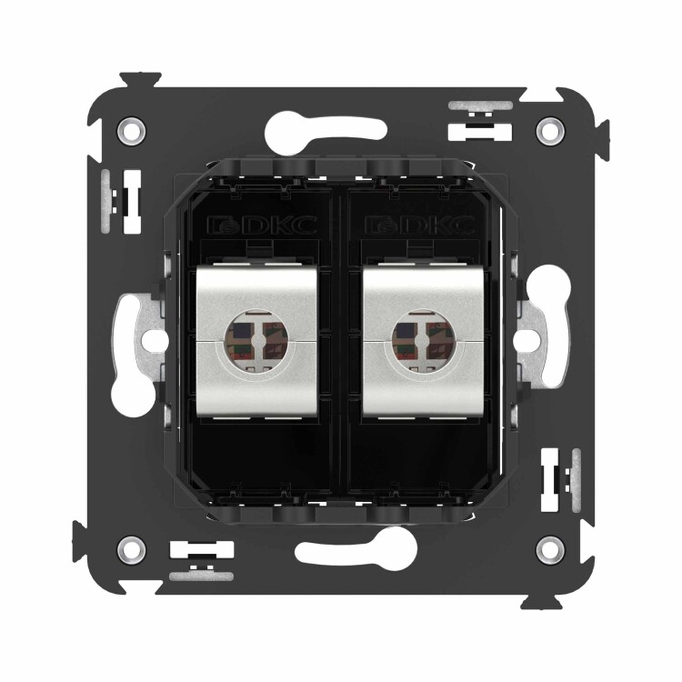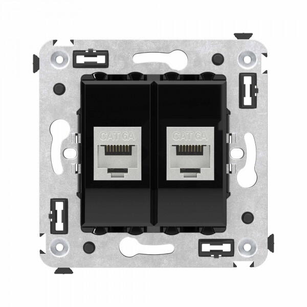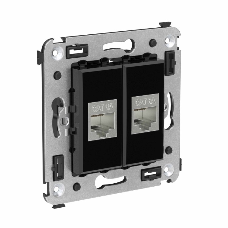 Компьютерная розетка RJ-45 без шторки в стену, кат.6А двойная экранированная, "Avanti", "Черный квадрат"