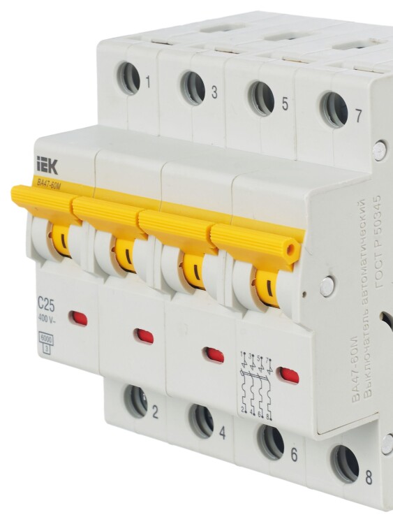 Автоматический выключатель ВА47-60M 4P C 25А 6кА IEK