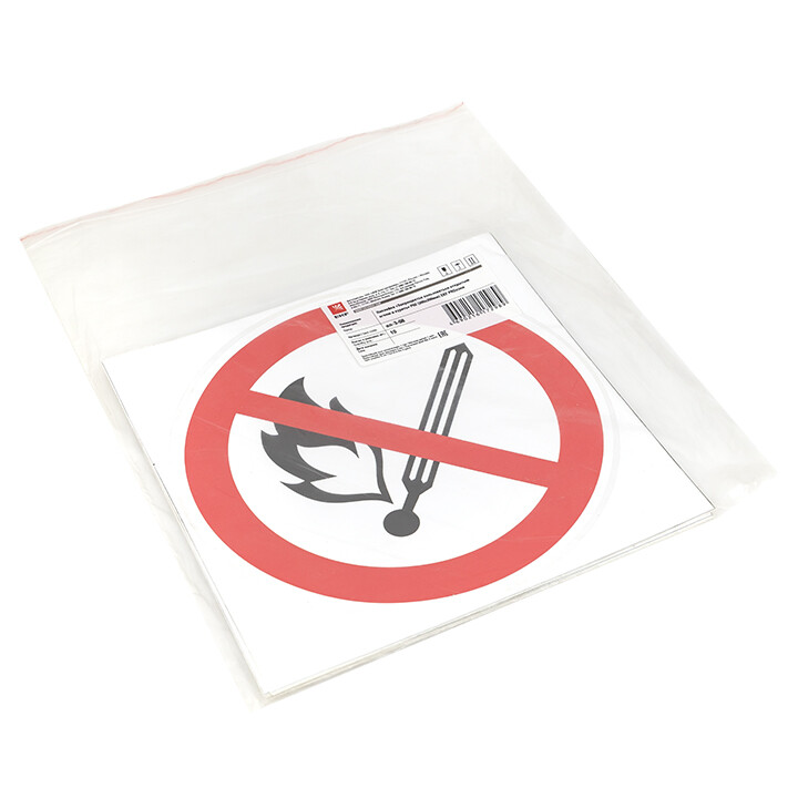 Знак наклейка Р02 "Запрещается пользоваться открытым огнем и курить" (200х200) ГОСТ 12.4.026-2015 EKF PROxima
