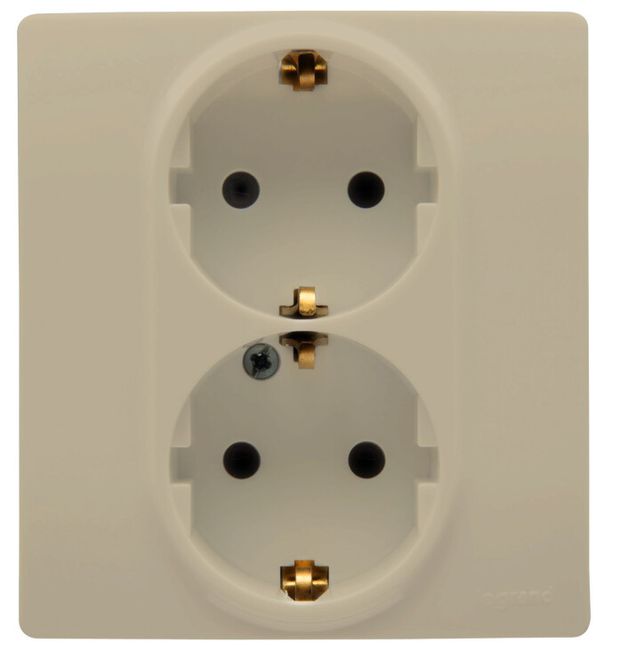 Розетка 2x2P+E 16А со шторками в сборе безвинт.зажим слоновая кость Etika (замена на 672373)