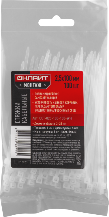 Хомуты ОНЛАЙТ 90 293 OCT-025-100-100-WH (100 шт/упак)