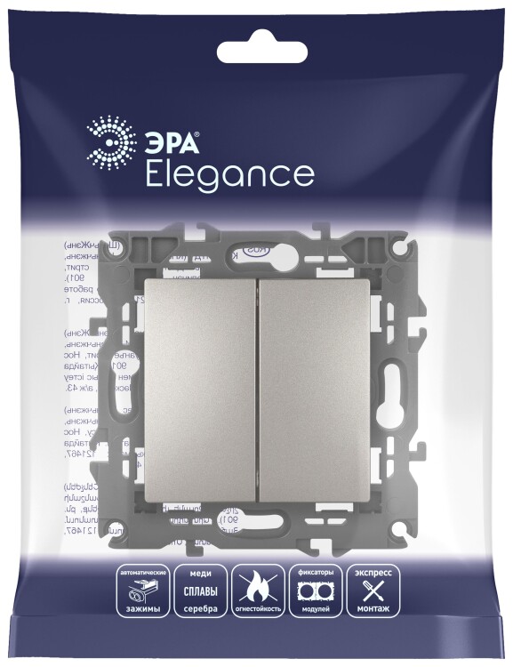 Переключатель ЭРА Elegance 14-1106-16 двойной, 10АХ-250В, титан