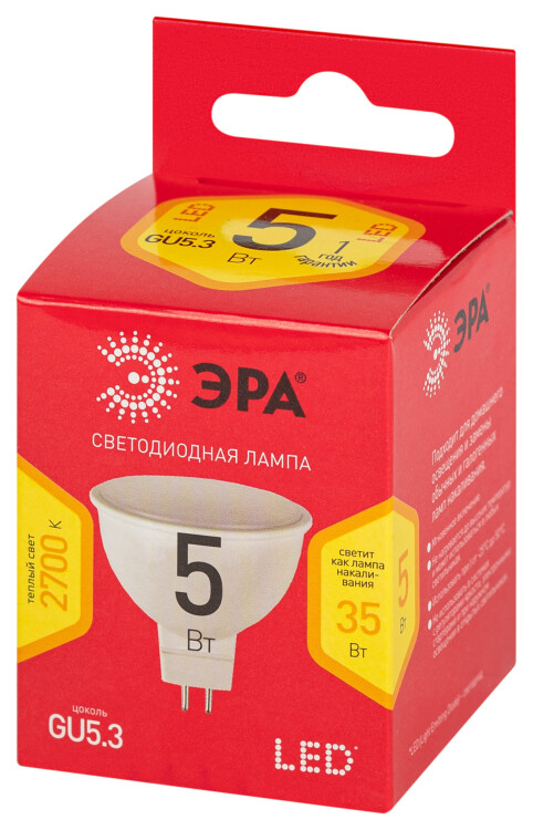 Лампочка светодиодная ЭРА RED LINE LED MR16-5W-827-GU5.3 R GU5.3 5 Вт софит теплый белый свет