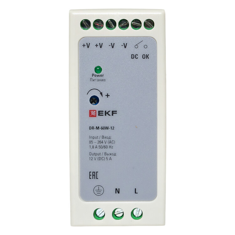 Блок питания на дин рейку 60Вт,Uвх ~ 220 В AC m, Uвых - 12 В DC постоянного тока