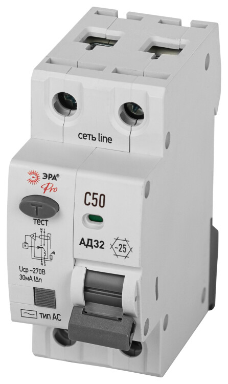 АВДТ 4,5кА ЭРА PRO D32E2C50АC30P АД-32 электронное 1P+N C50 30мА тип АC защита 230В
